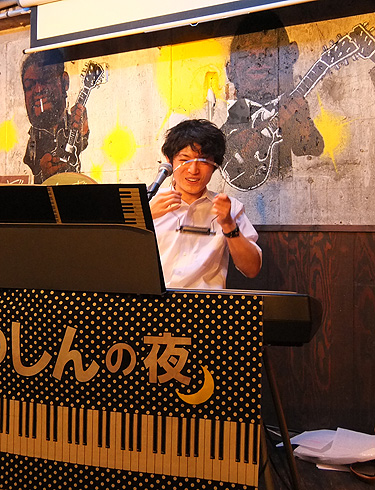 と、言いながら、首にブルースハープを掛ける…