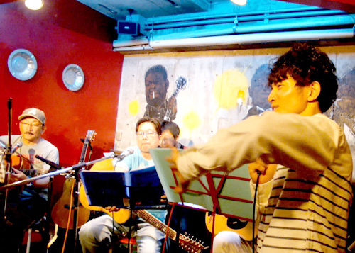 なおさんのギターの弦が切れて、12弦ギターが、今日は11絃なんですと、、