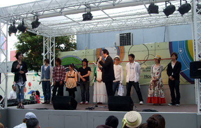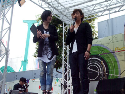 司会のお姉さんとスタンバイ中のKAKU。君
